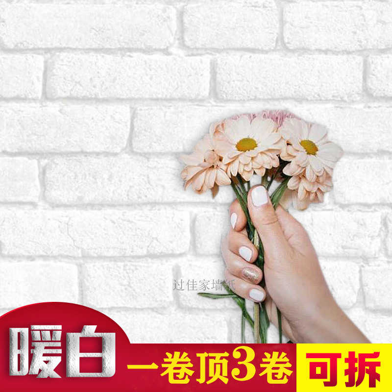 韓國進口大卷白磚壁紙白色磚紋壁紙仿磚塊北歐風格3d立體文化磚頭